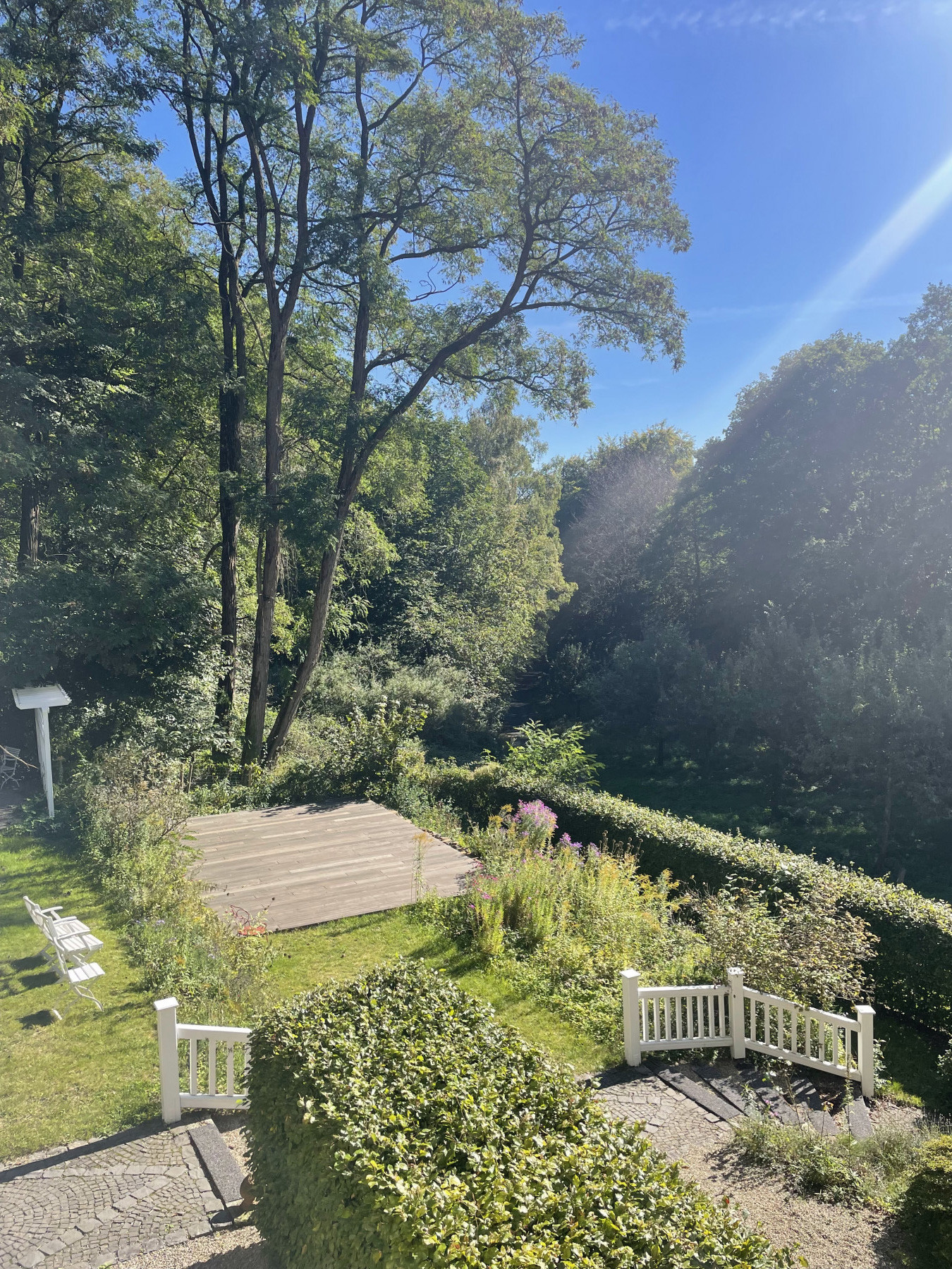 Ein besonderes Highlight ist der weitläufige, auf mehreren Ebenen angelegte Garten, in welchem sich die Naturnähe des Hillas besonders spüren lässt. Mit mehreren Plätzen, die zum Verweilen einladen, kann man hier ganz einfach Ruhe finden und Kraft tanken.