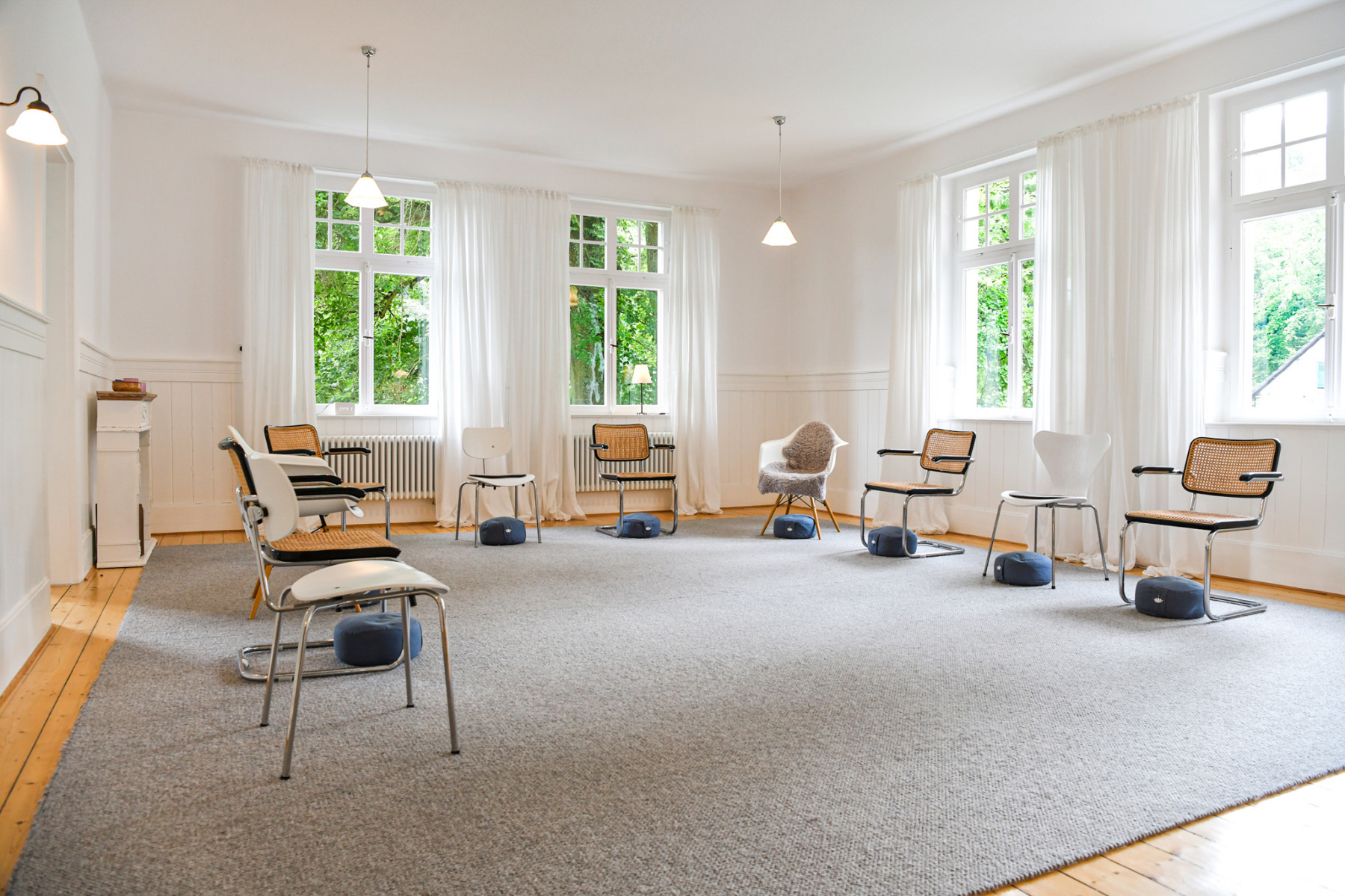 Der große Seminarraum mit Kamin (41 m²) ausgestattet mit modernster Tagungstechnik und Moderationsequipment, das Schreibzimmer (22 m²) für kreatives Schaffen, das Kaminzimmer für entspannten Austausch (22 m²) und der Coachingraum (17 m²) für Einzelgespräche lassen keine Wünsche offen. Zwischendurch gibt es Kaffee und hausgemachtes Gebäck in der Teeküche oder eine kurze Pause auf unserer Yogaplattform im Freien.