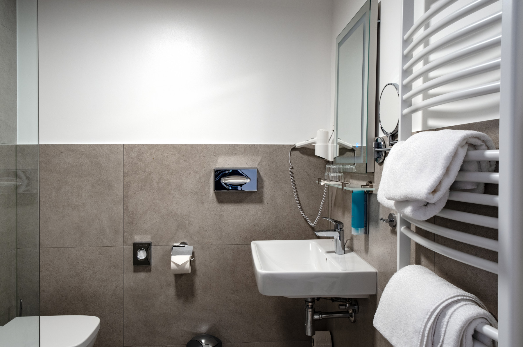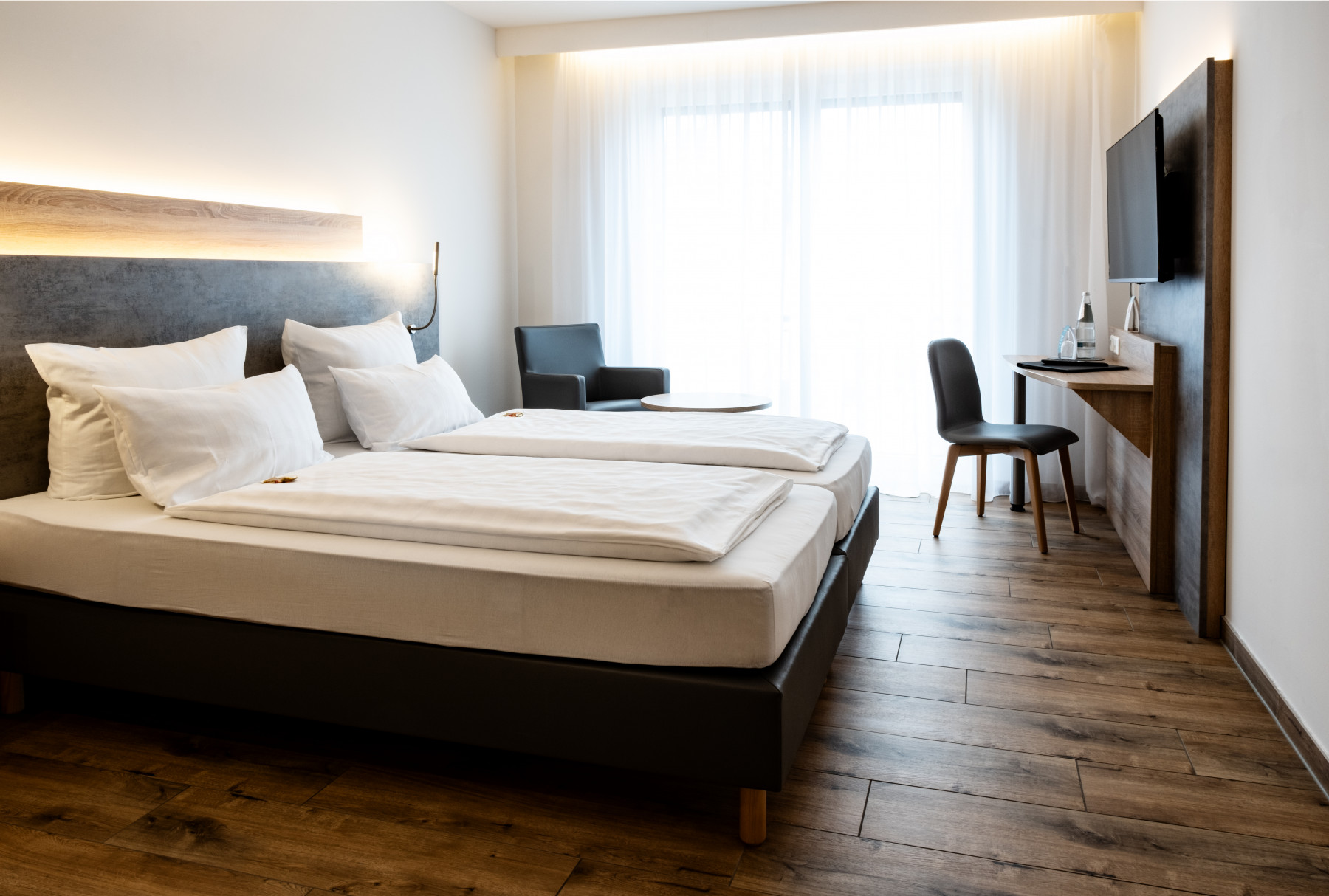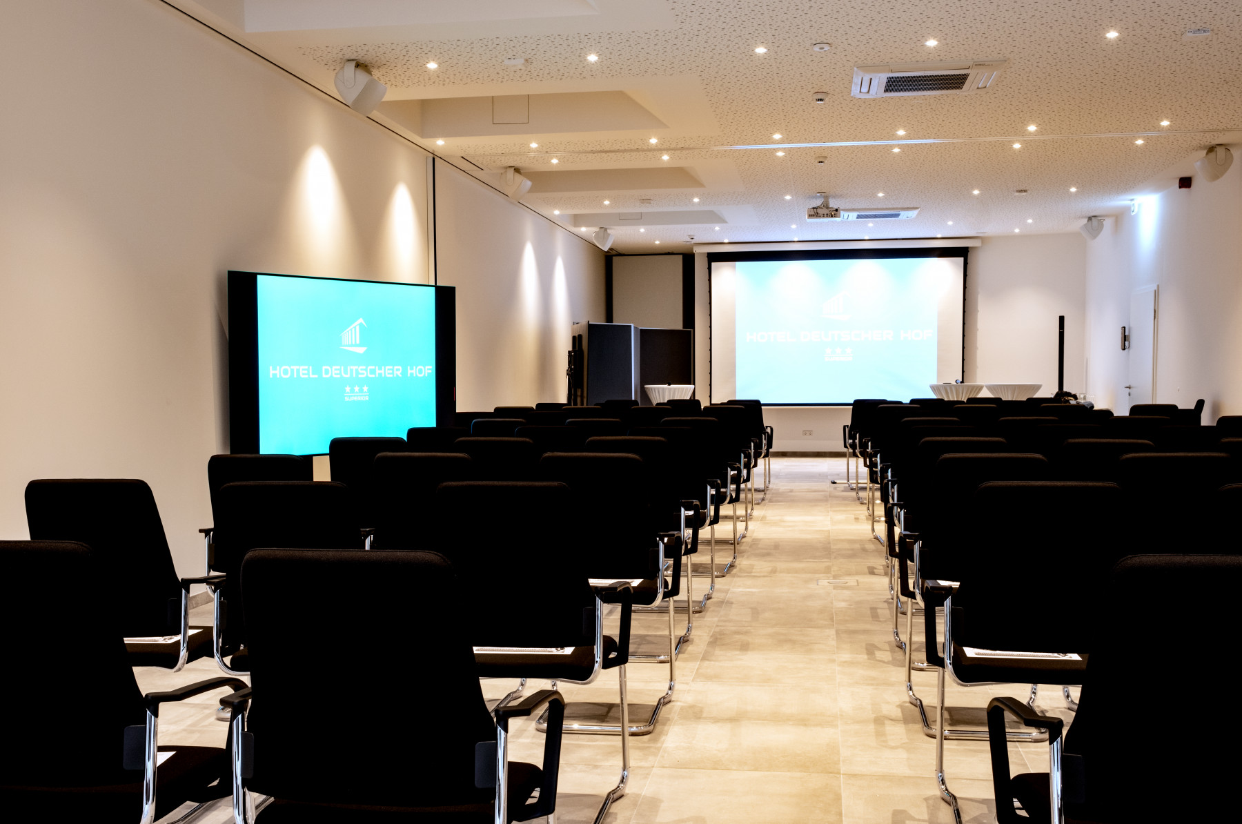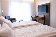 Auch in eine hervorragende technische Ausstattung wurde investiert: Im kompletten Neubau sorgt Gebäudeautomation für mehr Komfort und erlaubt die leichte Regelung von Beleuchtung, Belüftung und Verschattung. Alle Zimmer und Tagungsräume sind klimatisiert. Darüber hinaus steht Ihnen eine moderne Konferenztechnik mit Beamer, Präsentationsmonitoren, Wireless Click-Share-Verbindung und Beschallungsanlage zur Verfügung.