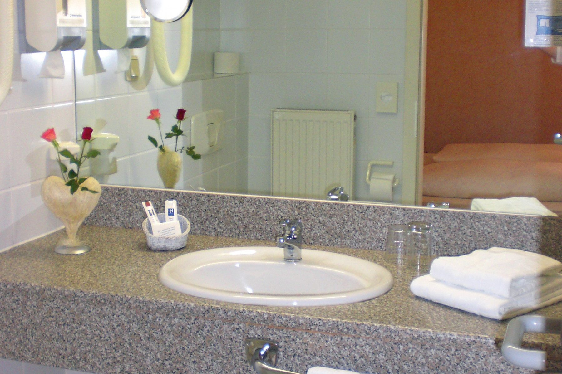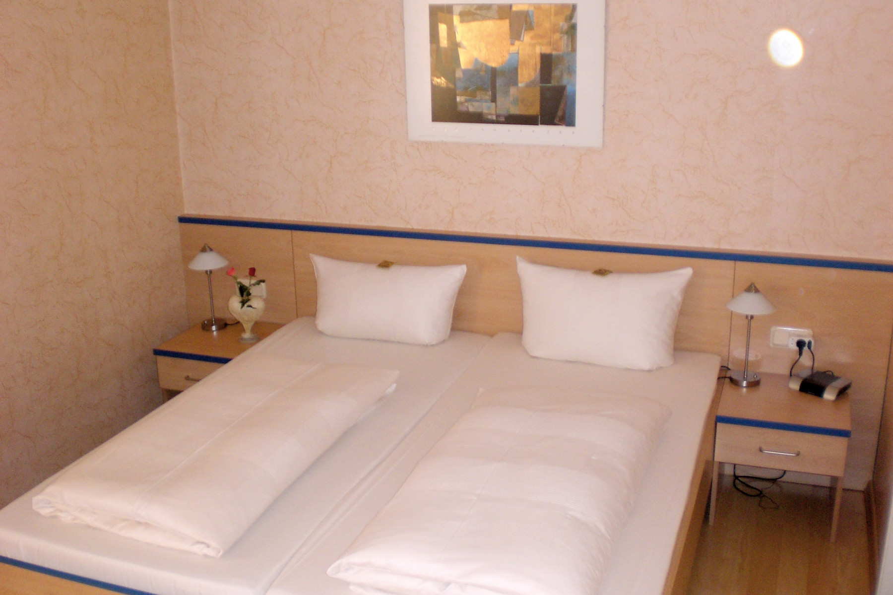 Komfort eines Mittelklasse-Hotels. Kostenfreie, hoteleigene Park- und Tiefgaragenplätze befinden sich hinter dem Haus.