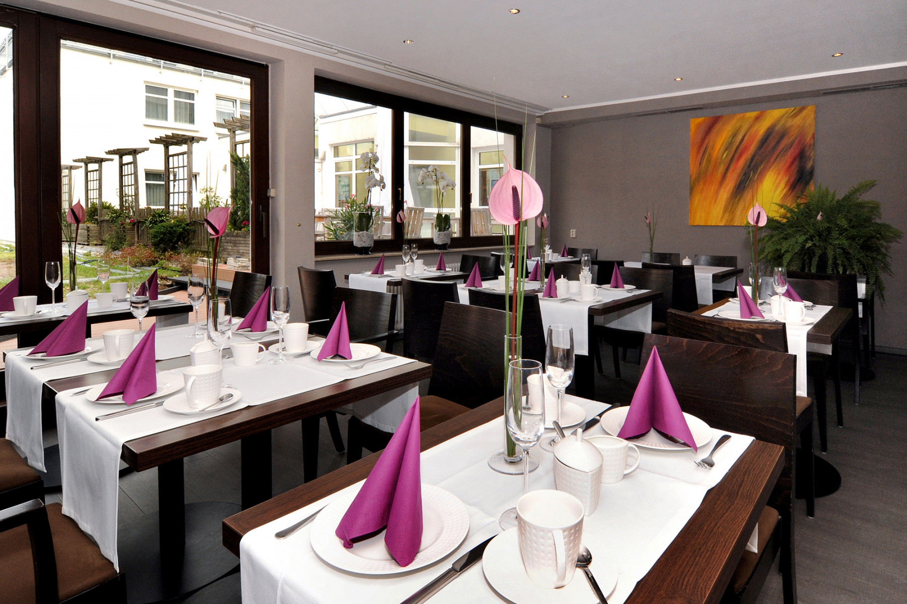 Alle Räume sind voll klimatisiert, verfügen über Tageslicht und können abgedunkelt werden. Außerdem können Sie die Räumlichkeiten flexibel und nach Ihren Wünschen kombinieren. Die Innenausstattung besticht durch warme Farben und hochwertige Materialien. Optimale Akustik sorgt für beste Informationsübertragung und auch unsere moderne Konferenztechnik wird höchsten Ansprüchen gerecht.