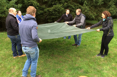 Am Abend sitzt das Team dann in geselliger Runde am selbst entzündeten Feuer, bevor die Nacht gemeinsam in den provisorischen Unterständen verbracht wird. Eine Abschlussrunde am Morgen bietet den Teilnehmern Gelegenheit, ihre nächtlichen Erlebnisse zu schildern. Außerdem werden gemeinsam Schnittpunkte des Erlebten mit dem Arbeitsalltag herausgearbeitet. Ein spannendes Gruppen-Event, in dem sich Kolleg*innen auf neue Art kennenlernen.